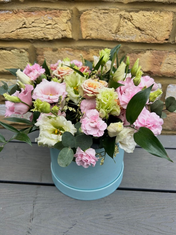 Gorgeous selection of Hatbox Flowers. Hat boxes available in lilac, blue, pink and grey colours. Please add preferred colour, when placing an order.